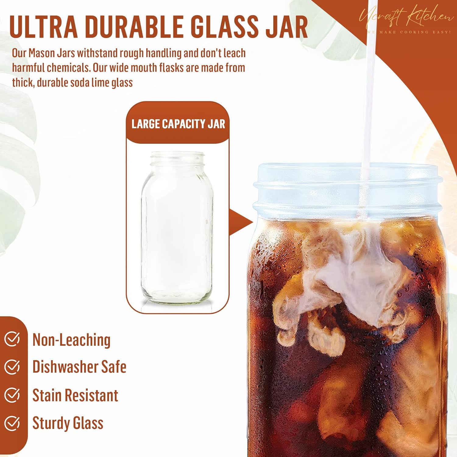 - Easy Cleaning & Dishwasher Safe: Keep your Mason jar drinking glasses sparkling clean with minimal effort. Our UCraft pitcher is dishwasher safe, allowing for easy cleanup after use. Enjoy the simplicity and convenience of Wide mouth mason jars in your kitchen.